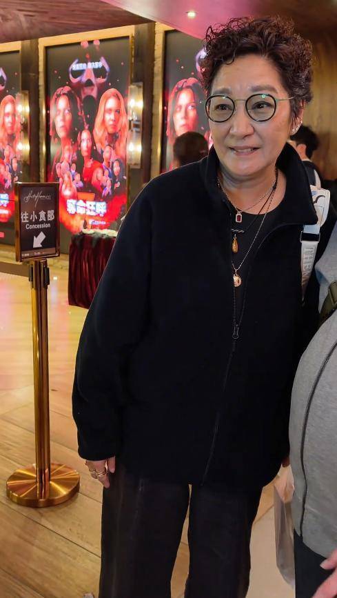 她穿着一身宽松的深色上衣,搭配休闲长裤,试图遮住发福的身形,可依旧能看出明显的臃肿。